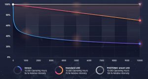 Intelligent Anti-Aging for LEDs. 21. August 2020 Photonic offers an anti-aging technology designed to stabilise the light output of LED light engines in the long term. Constant brightness throughout the entire product life cycle is a decisive quality characteristic for image processing systems. But image processing is not the only application where reliable lighting is important. ”For instance, if the intensity were to decline over time in the case of disinfection using UV light, one would have to increasingly extend the application time in order to generate the required dose of disinfecting UV radiation“, Photonic Business Developer Joachim Enengl explains. Such examples demonstrate how essential it is to maintain the light output at a constant level. To achieve that, Photonic has developed an anti-aging technology that gives LEDs an even greater competitive edge over other lighting systems. ”It is no secret that LED light engines not only result in lifelong cost savings, but also fare significantly better regarding light intensity. As a rule of thumb, the light output of a xenon lamp can be expected to decline to 60% or less within the first 150 hours. Standard LEDs, on the other hand, last seven times longer than xenon lamps and still deliver at least 10% more light“, Enengl adds. Thanks to its anti-aging technology, Photonic raises the bar even higher and attracts a lot of interest, not only among medical technology manufacturers. The light specialist resorts to two different methods. Where a constant light output is required but minor deviations play a less critical role, the LED current is continuously increased on the basis of a calculated aging curve. This approach is very cost-efficient and is applied, among others, in the latest product generation of Photonic‘s examination light, whose brightness can be manually adjusted by the user at any time. The second method regulates the LED current based on a reference signal provided by a photodiode and is particularly well-suited for image processing. ”In fluorescence diagnostics, for instance, where several wavelengths are involved, it is essential to keep the intensity of the different wavelengths constant in relation to each other. ”Thanks to our anti-aging technology, users have the additional certainty that their diagnosis is not distorted by fluctuations in light quality“, Enengl argues.